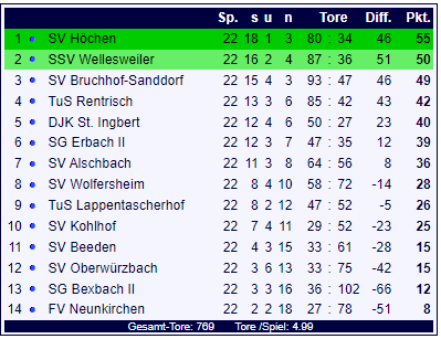 Auch die beiden Saarlandligisten sind im Einsatz: Der SV Bliesmengen-Bolchen reist am Samstag, den 13. Mai 2023 um 15:30 Uhr zum VfL Primstal, die DJK Ballweiler-Wecklingen muss am Sonntag, den 14. Mai 2023 um 15:00 Uhr beim TuS Herrensohr ran.