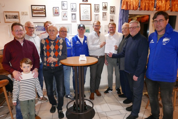 Finanzielle Unterstützung in Höhe von 12 300 Euro erhielt der Fußballverein Biesingen (FVB) vom Ministerium des Innern für die Sanierung seines Kunstrasenplatzes. Im August des vergangenen Jahres hatte ein Starkregenereignis den Kunstrasen auf dem Gelände des Günter-Müller-Sportparks total überschwemmt, es entstand ein Schaden von 50 000 Euro. Hans Juergen Priester, Finanz-Vorstand des FVB blickte bei der Übergabe des Zuwendungsbescheides durch den Staatssekretär im Saar- Ministerium für Inneres, Bauen und Sport, Torsten Lang zurück. „Nach der ersten Bestandsaufnahme und der Kostenermittlung war klar, dass wir als Aufsteiger in der Fußball-Verbandsliga zunächst nur Auswärtsspiele bestreiten konnten. Daher galt es vordringlich, den Rasen wieder spielfähig zu machen“, betonte Priester, der die schnelle und unbürokratische Unterstützung in Höhe von 11 000 Euro durch die Sportplanungskommission für erste Maßnahmen lobend herausstellte. Über den Hochwasserfonds des Deutschen Fußballbundes überreichte Saar-Präsident Heribert Ohlmann 12 500 Euro, die Stadt Blieskastel steuerte 5 000 Euro bei und private Spender halfen dem FVB mit insgesamt 4 300 Euro, wobei auch der befreundete Sportclub Blieskastel-Lautzkirchen mit 350 Euro half, so dass die Sanierung durch die Fachfirma Petry aus dem hessischen Taunusstein beginnen konnte. „90 Prozent des Granulats auf dem Kunstrasenplatz war durch den Starkregen weggeschwemmt“, so Priester. Bei den Folgearbeiten habe sich Vereinsmitglied Werner Ansel mächtig ins Zeug gelegt und in Eigenleistung durch mühsame Kleinarbeit drei von den insgesamt zehn Tonnen Kork-Granulat retten können. „Wir danken allen Spendern und Beteiligten für die Unterstützung, die den Schaden für den FVB auf ein Minimum reduzierte“, sagte Priester. „Als vorbeigende Maßnahme wurde unter Federführung von Werner Ansel der Zaun um das Sportgelände versetzt, um bei besseren Wetterbedingungen in den Frühjahrsmonaten den vorhandenen Wassergraben zu vertiefen, zu verbreitern und zusätzlich 60 Schutzplanken am Zaun anzubringen, damit das Wasser an der ursprünglichen Einlaufstelle vom Platz weggeleitet werden kann“, wusste zum Abschluss der kleinen Feierstunde FVB- Ehrenpräsident Günter Müller, der 46 Jahre erfolgreich den Verein führte und mit seinem Team neben dem schmuckem Sportheim den Bau des Kunstrasenplatzes in die Wege leitete.
