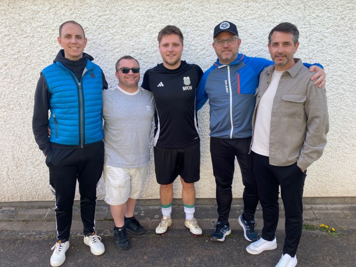 Die Vorstände Marco Peters, Jens Jung, Oliver Strack und Frank Grundhever. In der Mitte, der neue Cheftrainer, Marc-Kevin Wunn. (Foto: Verein)