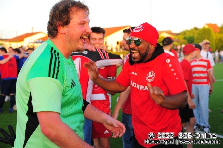 Der SV Kirrberg hat sich in einem intensiven Relegationsspiel gegen den FC Uchtelfangen mit 5:2 durchgesetzt und sich somit den Aufstieg in die Verbandsliga Nodost gesichert. Dabei sah zunächst vieles nach einem Erfolg für den Vizemeister der Landesliga Nord aus. Uchtelfangen erwischte einen Traumstart, als Louis Engel bereits in der 2. Minute nach Vorlage von Janis Pätzold zur Führung traf. Kurz vor der Pause erhöhte David Kolling in einer intensiven Partie auf 2:0 – erneut bereitete Pätzold vor (45.+3). Doch noch vor dem Seitenwechsel gelang Kirrberg die Wende: Mohamed Yakhni verschoss zwar zunächst einen Elfmeter (45.+5), traf aber im Wiederholungsversuch zum 2:1-Anschluss (45.+6), da sich der Keeper zu früh bewegt hatte. Henning Zehles war gefoult worden. Nach der Pause glich Kirrberg durch Henning Zehles selbst aus, der einen Abpraller zum 2:2 nutzte (50.). In der Folge wurde das Spiel zunehmend hektischer, Kirrberg aber effizienter: Jan Berger köpfte nach einem Freistoß zum 2:3 ein (80.), ehe Marc-Kevin Marx (82.) und Jan Ruffing (89.) den verdienten Endstand herstellten. Uchtelfangen hatte zwischendurch durch Yannick Huwer eine große Chance auf 3:4 zu verküürzen, scheiterte jedoch. Für Kirrberg war es nach einer überlegenen zweiten Halbzeit ein letztlich souveräner Auftritt, der den verdienten Aufstieg bedeutet. Zudem darf die SG Hassel jubeln: Durch den SVK-Sieg und -Aufstieg hält die SG Hassel die Spielklasse in der Landesliga Ost und die SG Hassel II hält die Spielklasse in der Bezirksliga Ost.