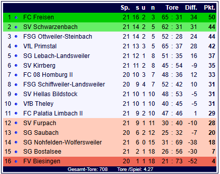 Drei Absteiger aus den Ostsaar-Bezirksligen: aus den Bezirksligen steigen jeweils die Mannschaften mit der geringsten Punktzahl und der schlechtesten Platzierung ab. (16.)