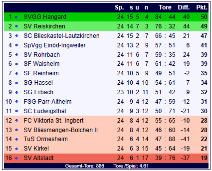 SUMME: 4 Absteiger (derzeit SV Altstadt, SV Kirkel, TuS Ormesheim)