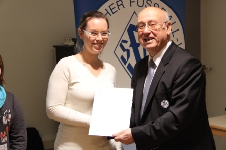 Für den SC Blieskastel-Lautzkirchen stand am Freitagabend neben den Weihnachtsfeiern der A-Jugend, D-Jugend und der E-, D- und C-Mädchen ein ganz besonderes Event auf dem Programm: Die SC-Delegation um Mädchentrainerin Daniela Seegmüller, den Mädchenspielerinnen Lena Gros, Leah Kelm und Fabienne Schlick und SC-Jugendleiter Marc Schaber reiste zur Geschäftsstelle des Saarländischen Fußball verbandes an die Herrmann Neuberger Sportschule in Saarbrücken um dort den DFB-Jugendförderpreis 2012 für hervorragende Jugendarbeit entgegen zu nehmen.