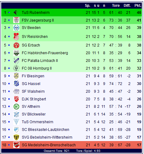 Damit ist das Spieljahr 2011 also auch in der Bezirksliga Homburg beendet und man darf gespannt sein, wer im Winter die beste Vorbereitung und vor allem den besten Start ins neue Jahr hinlegt.