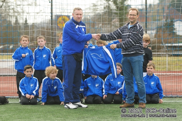 Die F-Jugend des SC Blieskastel-Lautzkirchen darf sich über einen Satz nagelneue Trainingsanzüge freuen. Beim Heimturnier am Samstag in Blieskastel bergab Thomas Hurth im Namen von Physiotherapie Thomas Hurth in Blieskastel (Telefon: 06842 / 7060750) die Trainingsanzüge offiziell an die F-Jugend des SC.