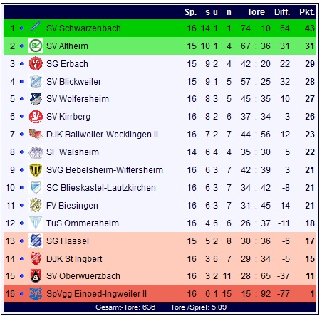 Am kommenden Wochenende geht es dann mit einem kompletten Spieltag weiter: Der Spitzenreiter aus Schwarzenbach reist zum Verfolger aus Blickweiler, Erbach empfängt den TuS Ommersheim und Altheim reist zum Aufsteiger aus Oberwürzbach: