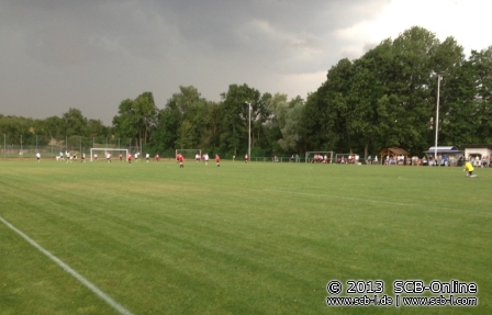 Gleich im ersten Spiel die Überraschung: Ein spätes Tor sicherte dem SV Altheim dem überraschenden Sieg gegen die DJK Ballweiler-Wecklingen, ehe die DJK sich gegen die SG Medelsheim-Brenschelbach langsam warm schoss: 5:0 stand es zur Pause, dann aber wurde es schwarz über Altheim. Ein Sommerunwetter zog heran und nach Sturm folgte Gewitter und Starkregen. Beim Stande von 6:0 für die DJK blieb dem Unparteiischen nur die Wahl die Partie abzubrechen. Das Unwetter wurde immer schlimmer und gegen 20:00 Uhr half nur noch sich in Sicherheit zu bringen. Damit bleibt die Gruppe B unvollendet. Es liegt keine Information vor, wie die Wertung erfolgt: