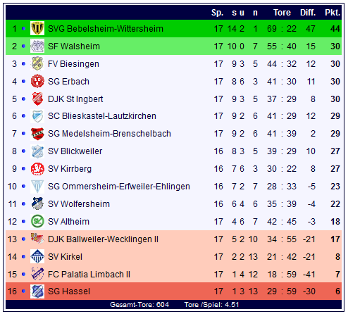 Der Bliestal-Fußball ist in der Winterpause und beim Blick auf die Tabelle der Bezirksliga Homburg stellt sich vor allem eine Frage: Wer schafft den Sprung auf Relegationsrang zwei? Die Meisterschaft scheint ob des klaren 14-Punkte-Vorsprungs der SVG Bebelsheim-Wittersheim bereits entschieden, der Kampf um Rang zwei könnte aber kaum spannender sein: Die Sportfreunde aus Walsheim auf rang zwei und die SG Medelsheim-Brenschelbach auf Rang sieben trennt nur ein einziger Punkt und auch dahinter drängen sich die Verfolger.