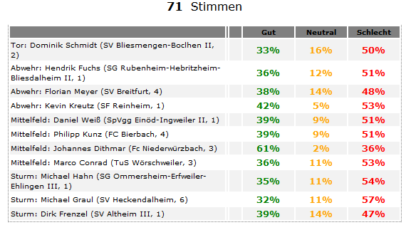 7. Spieltag: Stefan Baumann (SG Erbach, 76%), Johannes Dithmar (FC Niederwürzbach, 71%)