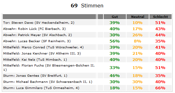 20. Spieltag: Mathias Meyer (SC Blieskastel-Lautzkirchen, 47%), Johannes Dithmar (FC Niederwürzbach, 61%)