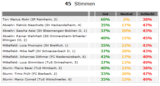 18. Spieltag: Peter Pusse (SC Blieskastel-Lautzkirchen, 53%), Mathias Schwarz (FC Niederwürzbach, 58%)