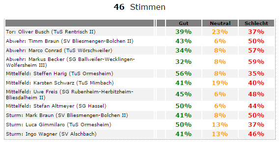 Steffen Harig vom TuS Ormesheim mit 56% positiven Bewertungen durchsetzen. Auf Rang zwei landete sein Teamkollege Luca Gimmilaro.