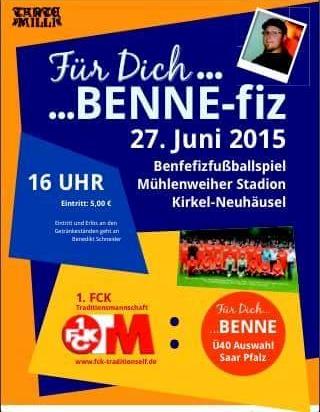 Der SV Kirkel veranstaltet am 27. Juni 2015 ein Benefizisspiel auf seiner Sportanlange. Eine Traditionsmannschaft des 1. FC Kaiserslautern wird dort gegen eine Ü40-Saar-Pfalz-Auswahl antreten.