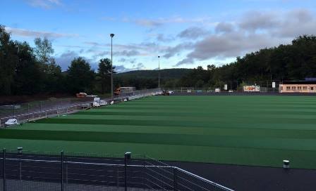 Der neue Kunstrasenbelag beim SV Kirrberg ist fast vollständig verlegt. (Quelle Verein Facebook)