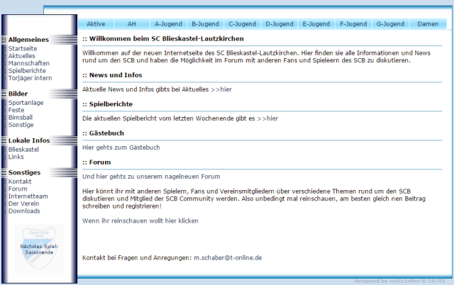 Marc Schaber: Die erste Meldung war wohl, dass der SC Blieskastel-Lautzkirchen eine neue Website hat (lacht). Ich finde zwar keinen Screenshot vom ersten Tag, aber dieser hier ist zumindest aus der Anfangszeit.