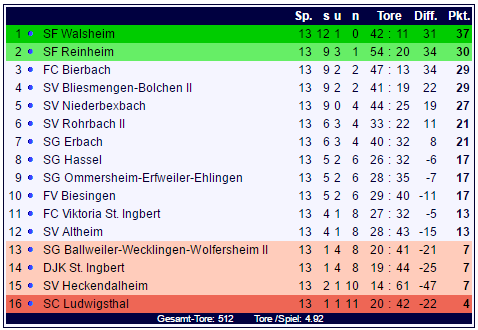 Auch auf SCB-Online wurden die Tabellen nun korrigiert: Der SCL ist mit vier Punkten nun Schlusslicht der Bezirksliga Homburg, der SV Heckendalheim steht zusammen mit der DJK St. Ingbert und der SG Ballweiler-Wecklingen-Wolfersheim II mit sieben Punkten auf dem vorletzten Tabellenplatz. Der FV Biesingen rangiert mit nunmehr 17 Zählern auf Tabellenplatz zehn. Zudem wird wohl auch noch die SG Ommersheim-Erfweiler-Ehlingen (5:1-Niederlage am 14. August 2016 in Ludwigsthal) Protest gegen die Wertung der Partie des SCL einreichen.