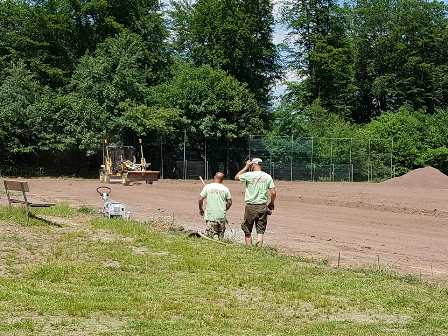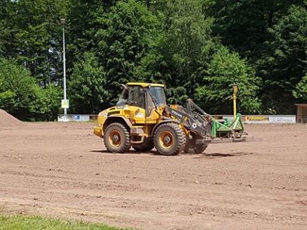 Als Drittletzter der Bezirksliga Homburg muss der SC Ludwigsthal in der kommenden Saison in die Kreisliga A absteigen, dennoch gibt es beim SCL Grund zur Freude: Die Bagger rollten an, um den heimischen Hartplatz zu einem Rasenplatz werden zu lassen. So wird der SCL in absehbarer Zeit auf sattem Grün um Punkte und Tore kämpfen können. "Die Planungen der Höhen ist soweit fertig, ebenfalls wurde heute das Material für die Umzäunung angeliefert und die Kernbohrung für die Wasserzufuhr wurde durchgeführt.", heißt es in einer Pressemitteilung des Vereins au Facebook.