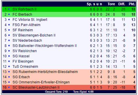 Die Tabelle der Bezirksliga Homburg hat derzeit noch ein unrundes Bild vorzuweisen. Der Grund: Am fünften Spieltag gab es in der Partie zwischen der SG Rubenheim-Hebritzheim-Bliesdalheim und der SG Ommersheim-Erfweiler-Ehlingen einen Spielabbruch. In der 90. Minute führte die SG Ommersheim-Erfweiler-Ehlingen mit 3:0, als es zum Spielabbruch kam. „Der Abbruch des Spiels beim Stande von 0:3 in der Schlussminute war aus meiner Sicht völlig überzogen, da ein Spieler vor Schmerzen schreiend am Boden lag und sein Vater sich einfach nur vergewissern wollte, wie es seinem Sohn geht.“, erklärt SG-Coach Oberinger im SaarAmateur. In einem Kommentar auf SCB-Online ließ Oberinger aber gleichzeitig keinen Zweifel daran, dass die Punkte sportlich den Gästen gehören: "Die drei Punkte hat sich die SG verdient." Diese Meinung deckt sich mit einer User-Umfrage auf SCB-Online: Über 100 User haben abgestimmt und 85% sind der Meinung die Punkte sollten an die Gäste gehen.