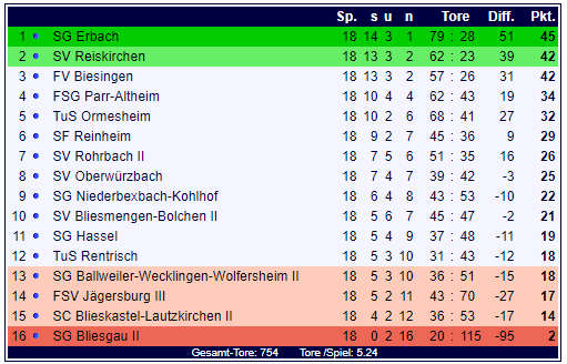 Die Tabellensituation machte die Partie sicherlich noch interessanter als sie durch die Vorgeschichte ohnehin schon wäre: Der SV Reiskirchen stand mit 39 Punkten auf Rang drei der Tabelle und könnte mit einem Sieg mit dem Tabellenzweiten des FV Biesingen gleichziehen und bis auf drei Punkte an den Spitzenreiter der SG Erbach heranrücken. Auf der anderen Seite war der SC Blieskastel-Lautzkirchen II, wie schon im Vorjahr, in allerhöchster Abstiegsnot und rangiert mit 14 Punkten auf dem vorletzten Tabellenplatz. Während die SG Bliesgau II mit zwei Punkten abgeschlagen am Tabellenende stand, könnte die SC-Reserve mit einem Sieg an den Block des FSV Jägersbug III (17 Punkte), der SG Ballweiler-Wecklingen-Wolfersheim II (18 Punkte), des TuS Rentrisch (18 Punkte) und der SG Hassel (19 Punkte) im Abstiegskampf heranrücken.