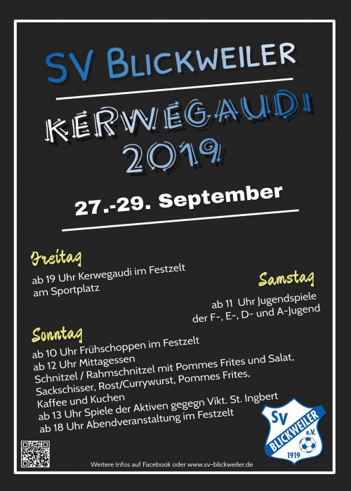 Unabhängig von Statistiken freut man sich beim SV Blickweiler auf die Kerb: "Am Freitag ist es soweit! Kerwezeit ist für Blickweiler die schönste Zeit im Jahr. Ab 19:00 Uhr ist unser Festzelt geöffnet. Wir erwarten euch!" Auch ansonsten erwartet die Besucher ein volles Programm.
