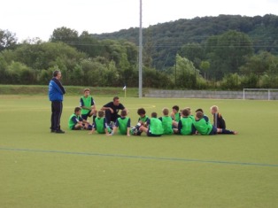 Taktikbesprechung unserer Ersten vor dem Spiel in Heckendalheim