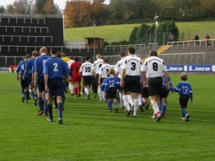 Unsere F-Jugend begleitet die Spieler von Borrussia Neunkirchen beim Auflaufen (Oktober 2004)