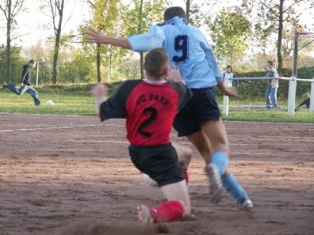 Peter Pusse setzt sich gegen seinen Ormesheimer Gegenspieler durch (November 2004)